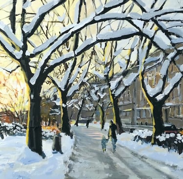 Obraz "Aleje" zaprasza widza do refleksji nad subtelnościami natury, podobnie jak dzieło Wyspiańskiego. Mistrz użył w swoim obrazie olejnymmbogactwa kolorów i detali, zachwycając swoją wizją krakowskich Plantów o poranku. W moim malarstwie akrylowym postanowiłem pójść inną drogą. Staram się uchwycić esencję tego momentu, ale przy wykorzystaniu nowoczesnej techniki i stylu, co nadaje obrazowi świeżość i nowoczesność.